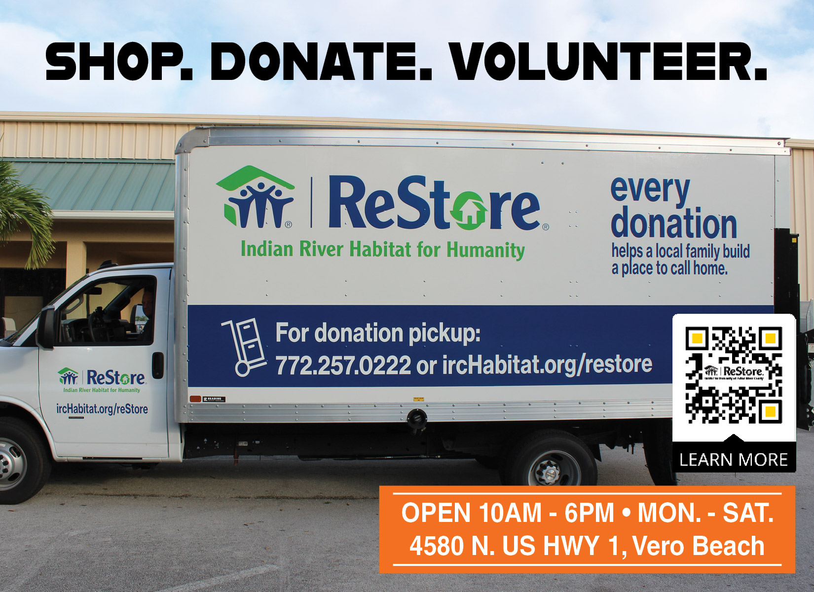 Located near the corner of 45th Street and US Highway 1, the Habitat ReStore in Vero Beach is the second largest Habitat Restore in Florida. We are proud to carry new and gently used items such as furniture, home décor, building materials, household appliances, lighting, and much more!